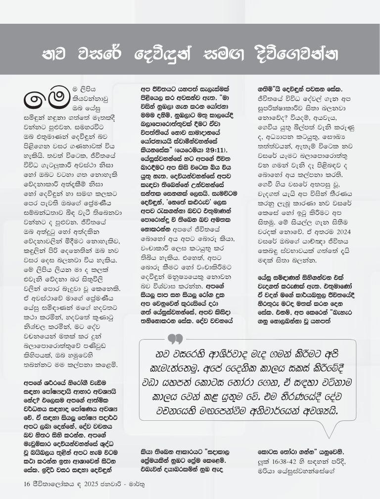 නව වසරේ දෙවිඳුන් සමඟ දිවි ගෙවන්න